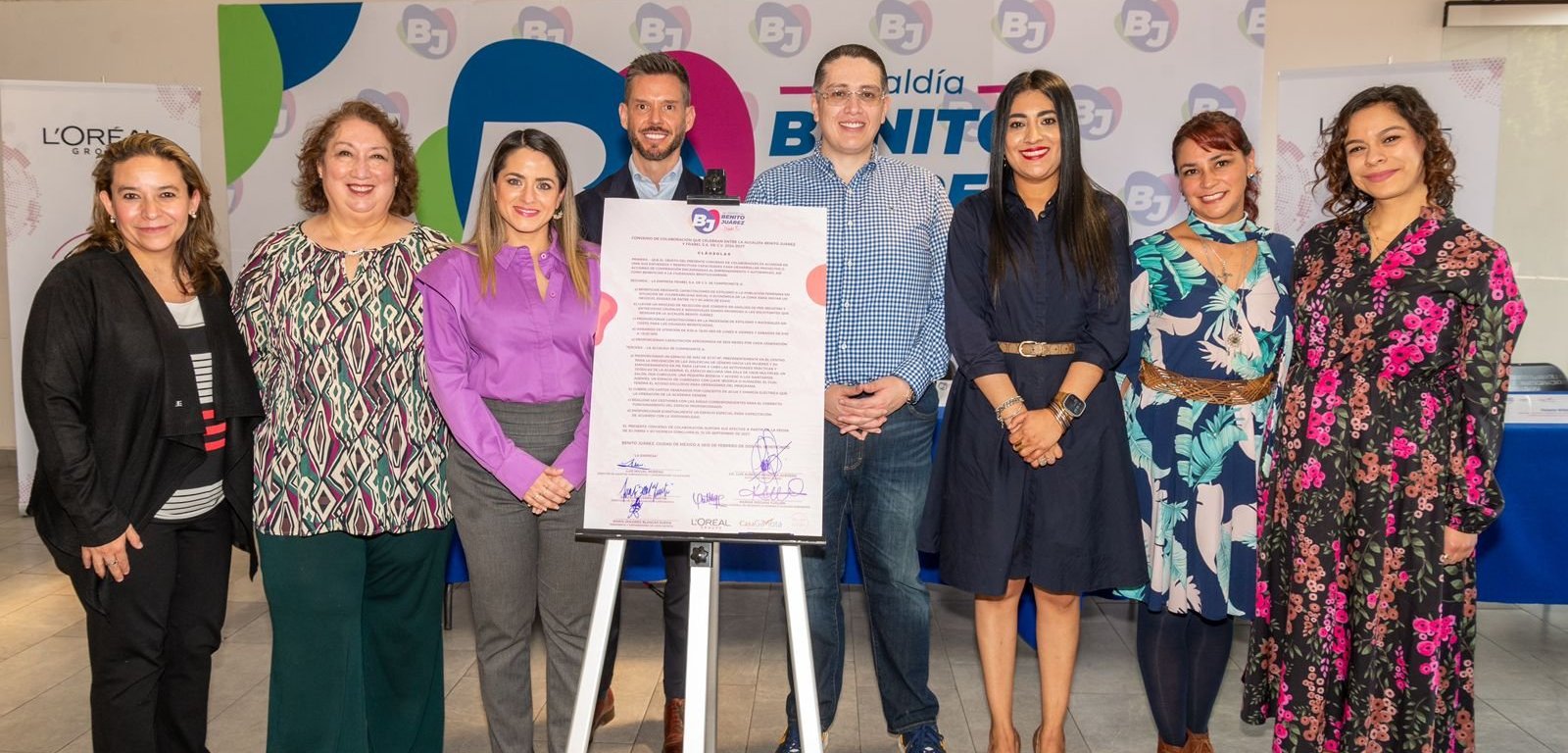 En la firma de este acuerdo de colaboración participaron el alcalde Luis Mendoza Acevedo; Karina Magaña, directora general de Desarrollo Humano e Igualdad Sustantiva de la demarcación; así como los representantes del Grupo L´Oréal Luis Miguel Moreno, director de Asuntos Corporativos y Comunicación y Araceli Becerril, directora de Responsabilidad Corporativa y Dolores Blancas Rueda, Presidenta y Coundadora de Casa Gaviota A.C.